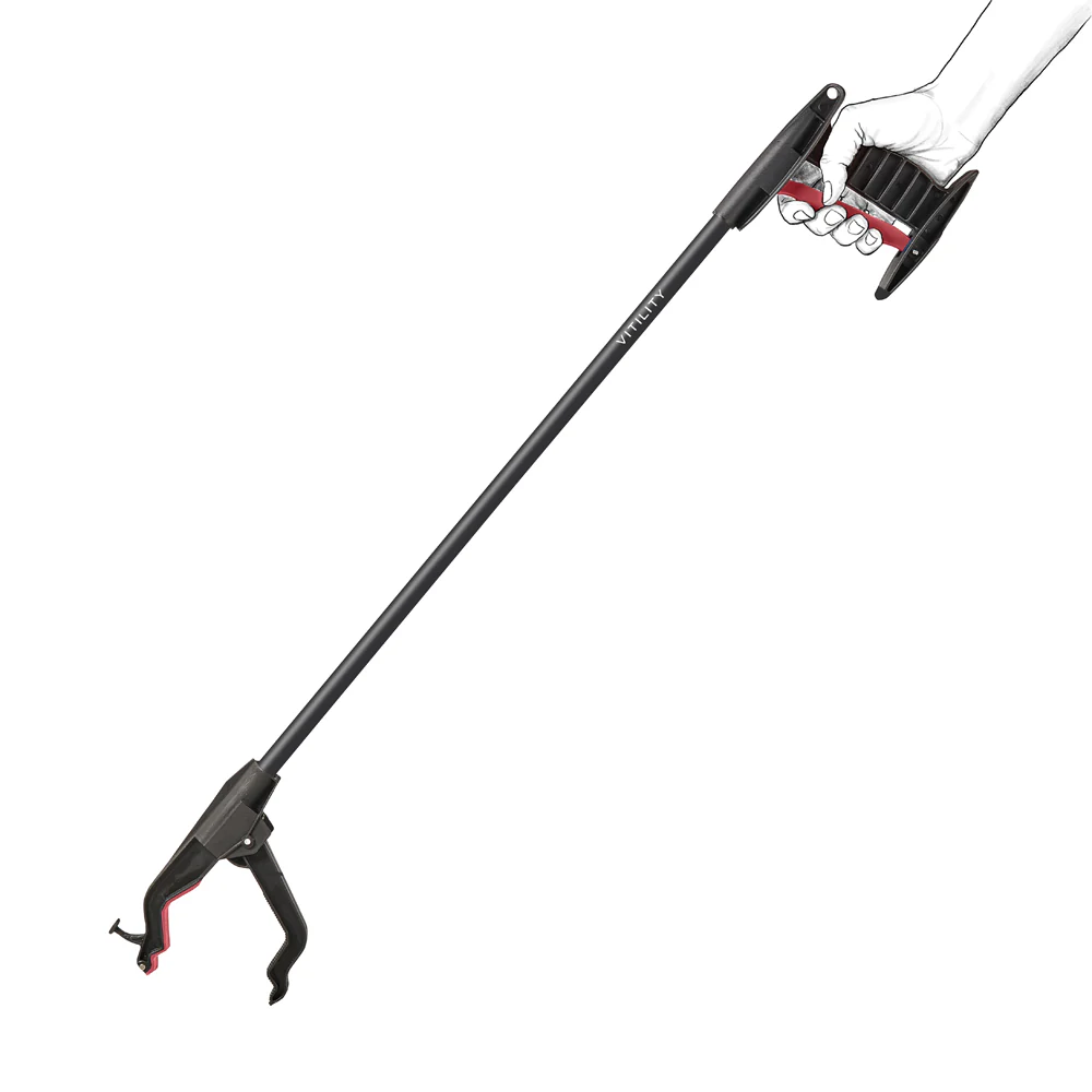De VITILITY grijper met haak en magneet maakt het oppakken van spullen eenvoudig en comfortabel. Dankzij de lichte knijpbeweging pak je moeiteloos voorwerpen zonder te bukken of te reiken. De magneet is ideaal voor kleine metalen items zoals sleutels en de haak helpt bij het naar je toe halen van kleding of tassen. Het ergonomische ontwerp zorgt voor minder belasting van handen en polsen, wat deze grijper perfect maakt voor dagelijks gebruik.
