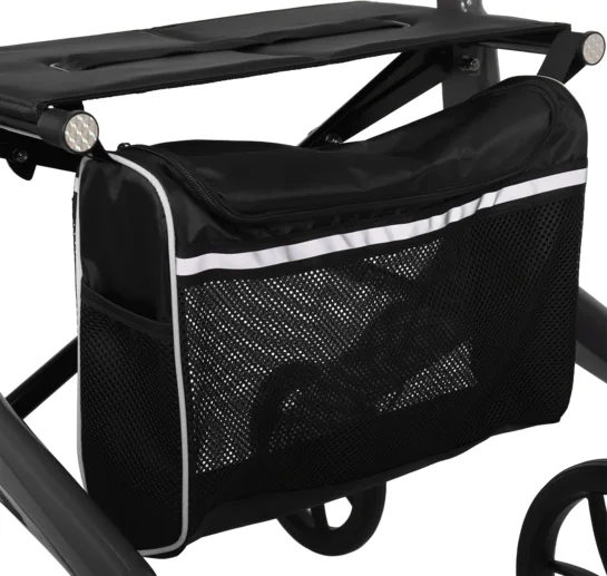 Deze rollator is voorzien van ergonomische handvatten, een veilige parkeerrem, een zachte zitting en een stevige rugband. De Aerowalk Carbon is geschikt voor zowel binnen als buiten en wordt standaard geleverd met een afneembare boodschappentas.