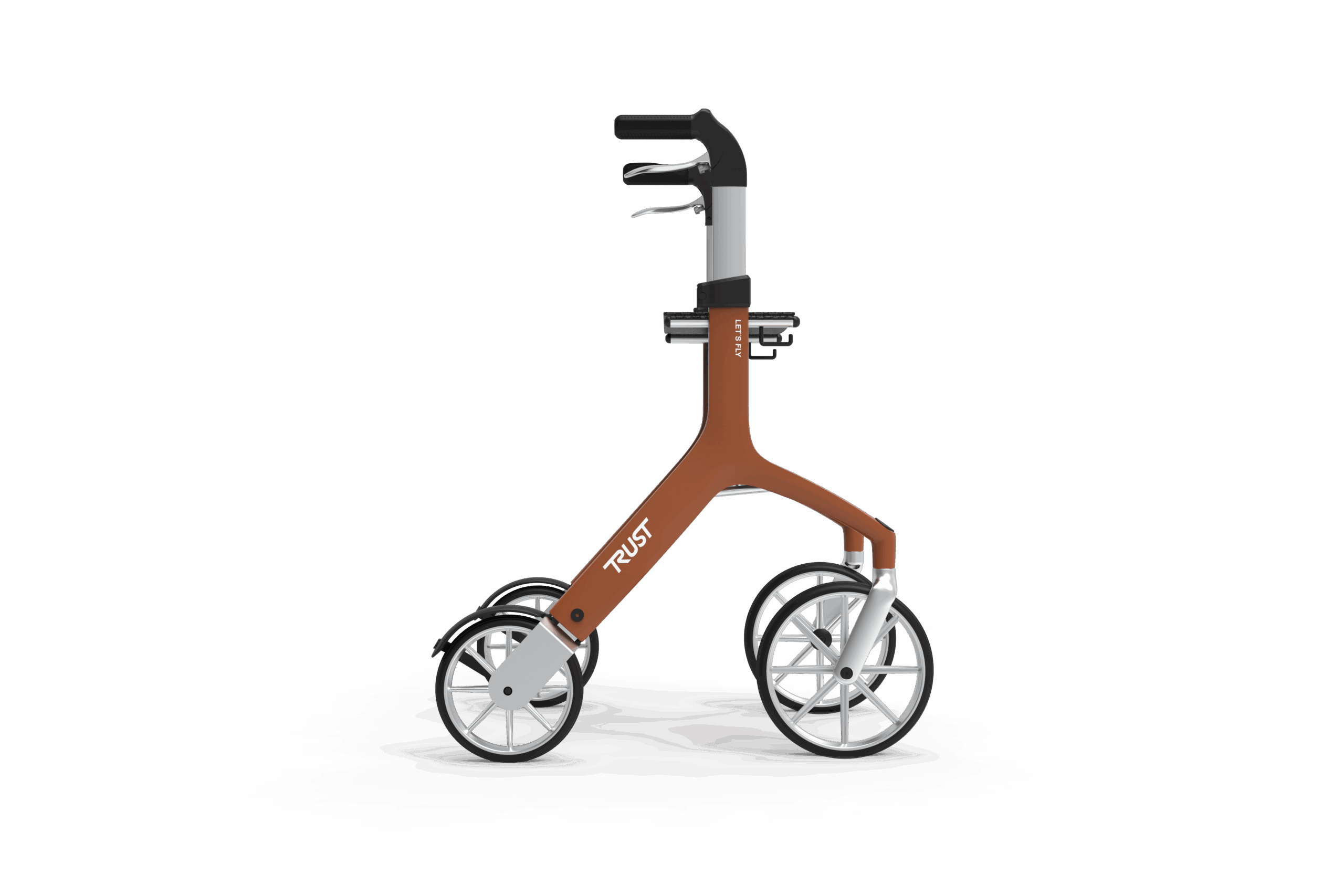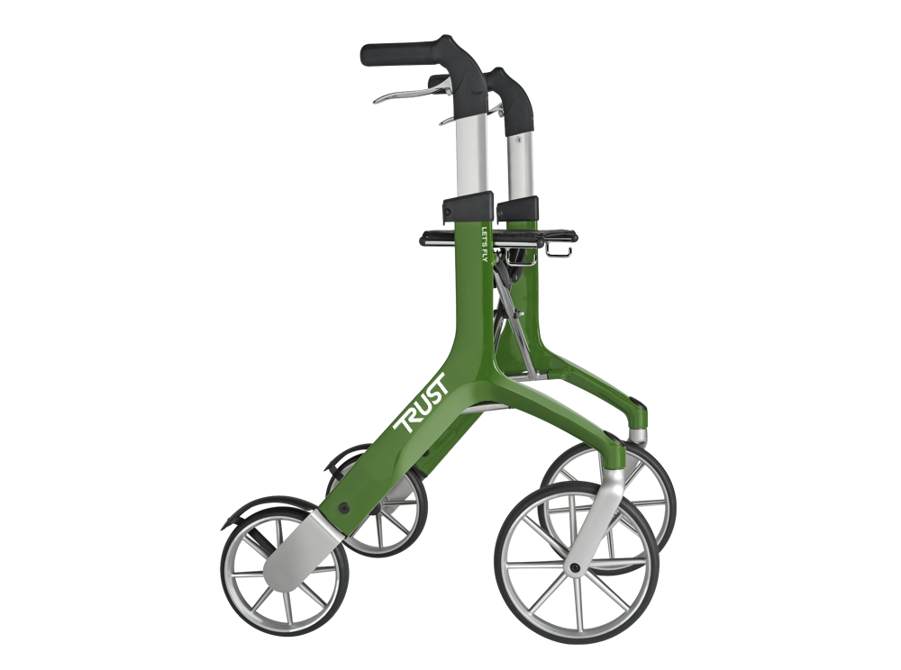 De Trust Care Lets Fly is de ideale rollator voor mensen die tot in de puntjes afgewerkte rollator willen hebben. Dit model is met recht een design stuk: alle kabels zijn netjes uit het zicht (in het frame) weggewerkt. Enerzijds oogt dit mooier, maar wellicht nog wel belangrijker: het is veilig! U kunt door de weggewerkte remkabels niet blijven hangen. Wel zo prettig. De Lets Fly is met een zachte trekbeweging op de zitting in te klappen tot een makkelijk te vervoeren rollator. Voor extra comfort zijn de achterwielen van de rollator voorzien van demping/vering.